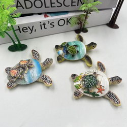 Custom Hand-painted Resina Artesanato 3D Ímãs de geladeira Creative Travel Souvenirs Praia Tartaruga Mãe-filho Tartaruga Ímãs de geladeira